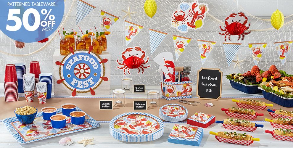 15% off with code sunnysavingz. Don't forget to add some party balloons to take your table to the height of style. It was a gentleman's 40th birthday. I am so proud of this menu i pulled together for a dinner party i hosted last night. A warm summer evening invites you to a fish dinner outdoors. Stretch a (fishing) net across the tablecloth, sea shells and starfish symbolize the sea and beach. Show your friends who is king crab this summer! 5 out of 5 stars. Crawfish boil birthday party decoration happy birthday banner with lobster seafood boil themed party decor and supplies for home. Baja (california) shrimp tacos with spicy citrus slaw. We usually put down some newspaper and go to work but i wanted to change things up and added great decor items. Free shipping on orders over $25 shipped by amazon. 5 out of 5 stars.